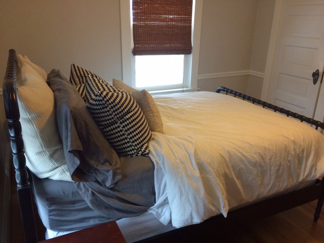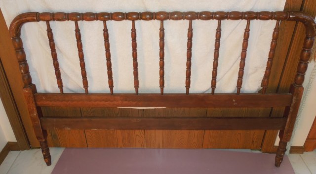 A year ago, I wrote about finding an antique Jenny Lind bed and raising the headboard to a more standard headboard height of about 52 inches. The bed has been finished and in my house for over nine months.. I think it’s about time to post a few pictures!
