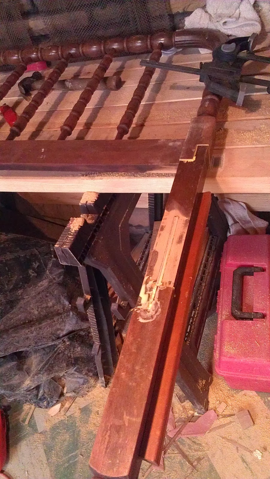 Here is how the headboard looked during the refinishing process: