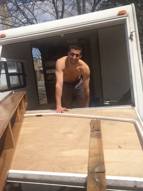 And now for a few pictures of my handsome boyfriend working on the inside with the camper airing out!